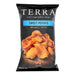 For over two decades, terra chips has had a passion for creating top quality, delicious chips. It is the goal of terra chips to not only create better-for-you products, but a healthier, stronger earth. Terra chips are guaranteed to have no trans fats, no cholesterol, no gluten and make more for a wonderful vegan snack. A distinct variety of the ipomoea batata delivers a glorious late summer orange to these chips. This is the hallmark sweet potato of the southern u.s. Includes one 6 oz. Bag. See nutrition fact panel for allergens. Terra chips were created over 20 years ago by two forward thinking new york chefs. From the first moment, people were hooked on the vibrant flavors and delectable crunch that comes from sourcing unique and diverse root vegetables from a select group of farmers. Today, the intimate process of crafting our chips remains, with 20 varieties and flavors that are truly distinctive by nature.