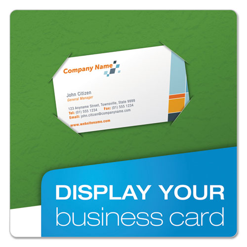 Report portfolios let you keep loose papers with fastened report. Leatherette-grained stock for a rich feel. Business card slot on inside front pocket. Holds up to 135 sheets of paper.