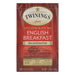 Twinings Tea Breakfast Tea - English Decaffeinated - Case Of 6 - 20 Bags.