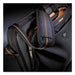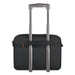 Fully padded 15.6" laptop compartment. Internal iPad®/tablet pocket. Full length front zippered pocket. Full size front zip-down organizer section. Orange interior lining. Vinyl body. Adjustable shoulder strap. Back strap slides over luggage handle.