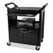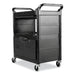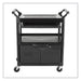 Utility Cart With Locking Doors, Plastic, 3 Shelves, 200 Lb Capacity, 33.63" X 18.63" X 37.75", Black.