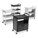 Won't rust, dent, chip or peel. Lightweight for easy maneuverability and quiet operation. No sharp edges to nick walls or furniture. Two-shelf cart with a sliding drawer beneath the top shelf and two locking doors beneath the bottom shelf.