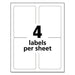 White Shipping Labels-bulk Packs, Inkjet/laser Printers, 3.5 X 5, White, 4/sheet, 250 Sheets/box.