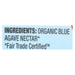 Wholesome! blue agave, organic is made from certified non-gmo ingredients and is 25% sweeter than sugar. Our agave nectar is a certified fair trade product of mexico. This sweetener is suitable for gluten-free, vegan and glycemic index diets and can be used as a sweetener in many recipes. This bottle holds 23.5 oz. Of organic blue agave nectar.